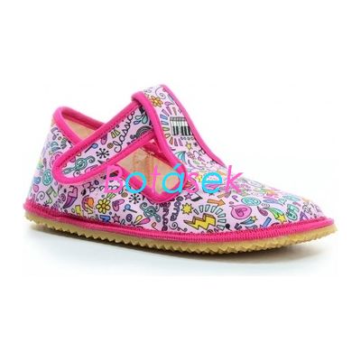 Barefoot přezůvky české značky Beda - nový inovovaný střih, který krásně sedí v kotníku. Lehké a pohodlné barefoot přezůvky s nápaditými vzory. Papučky jsou opatřeny opatkem.