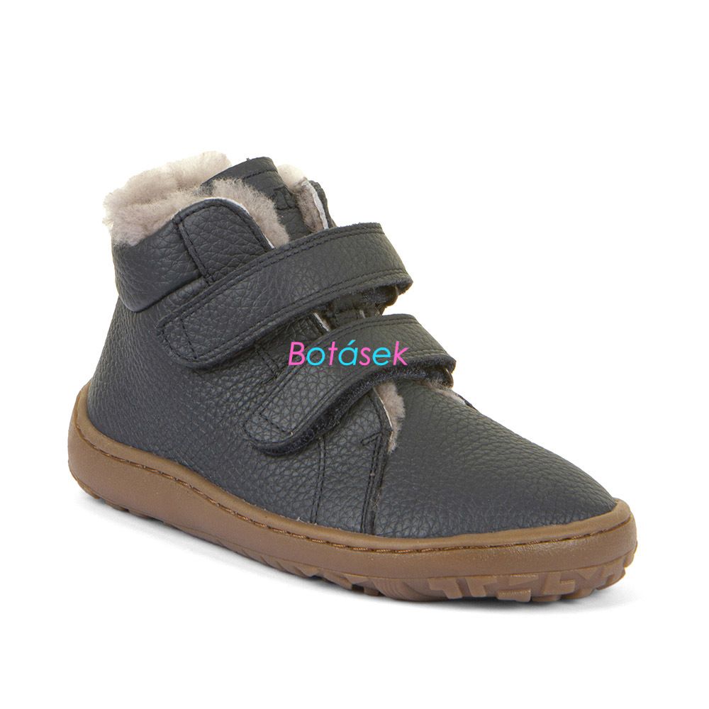 Nižší kotníkové zimní boty Froddo Barefoot, kompletně vyrobené z hladké kůže a zateplené jemnou vlnou.