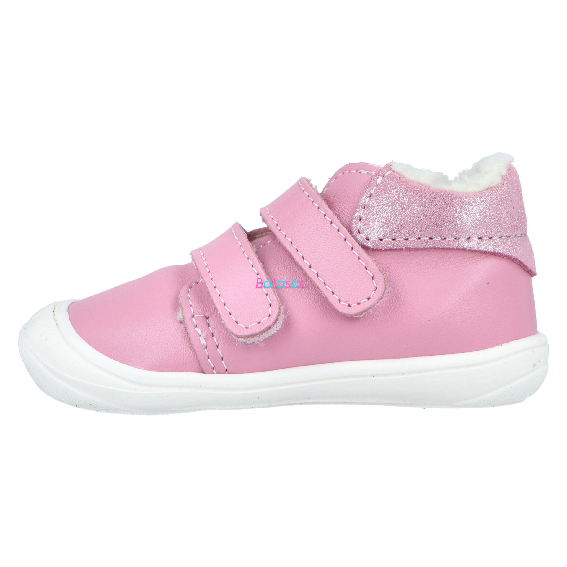 Dětská zimní zateplená kotníčková obuv s lehkou a ohebnou podešví. Dokonale se přizpůsobí dětské nožce. Vhodná pro první krůčky.